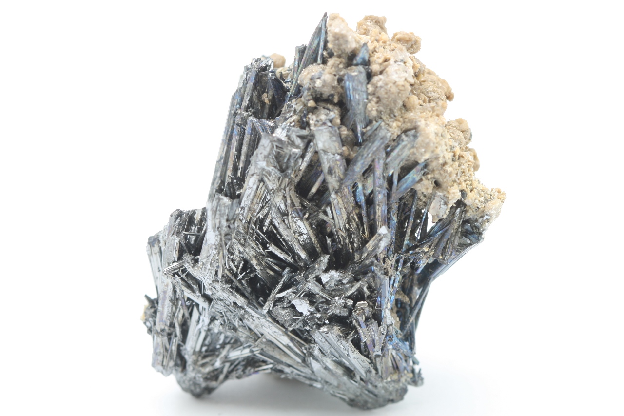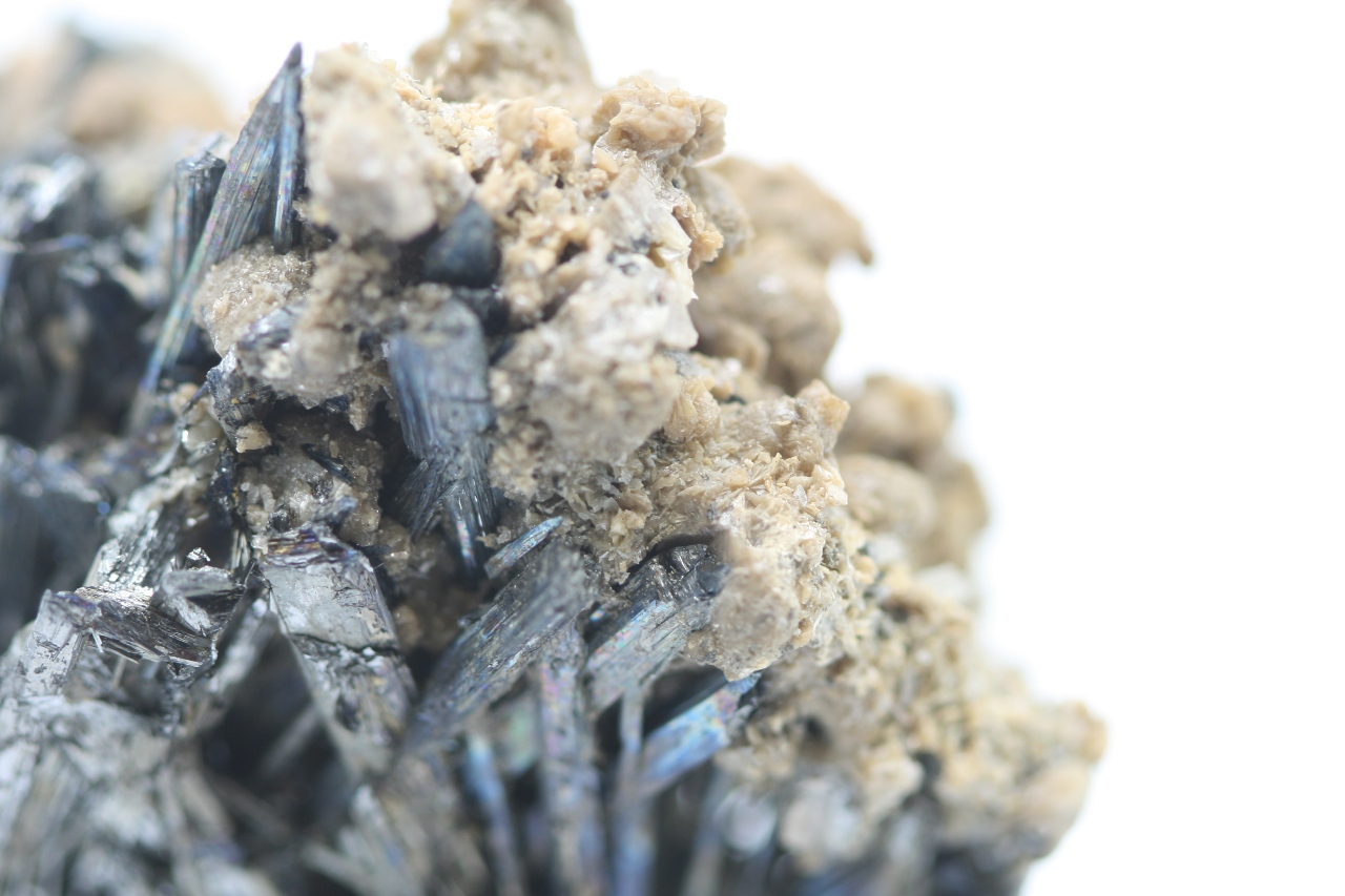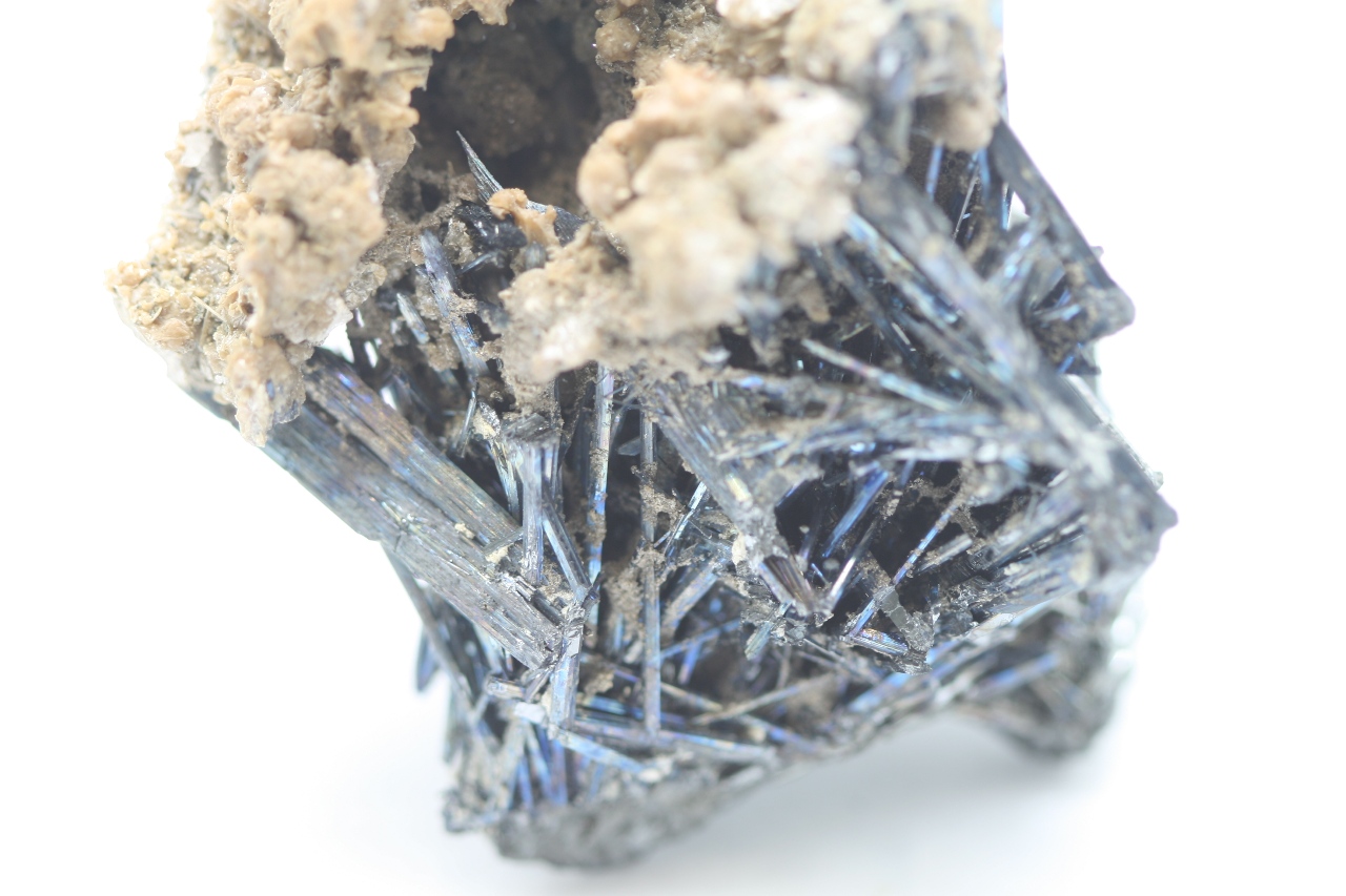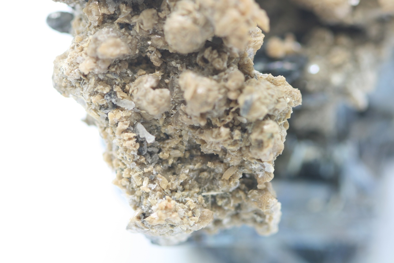 Beige tabular crystals and radial aggregates of antimony oxide. The “sun” of valentinite is 5 mm big.