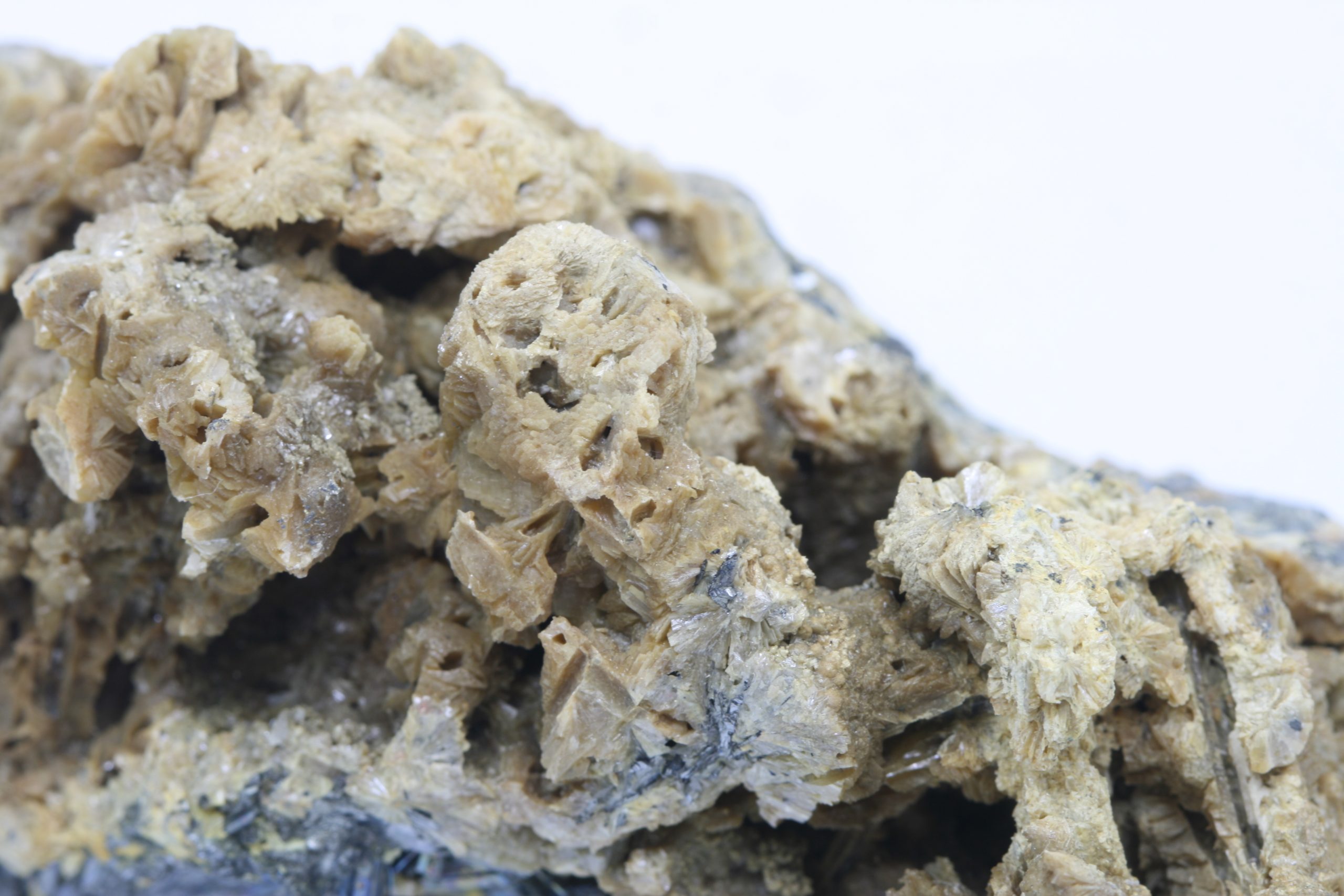 Beautiful massive aggregates of valentinite and antimony crystals variously intergrown. The sample comes from the Xikuangshan locality in China.