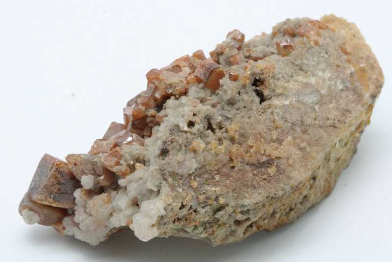 Orange columns of vanadinite. The largest crystal of vanadinite measures 8 mm .