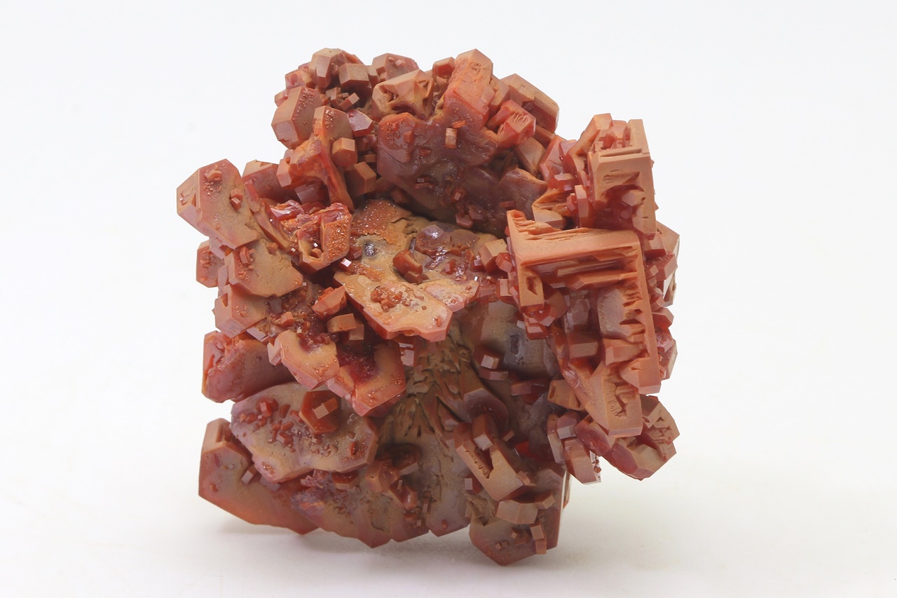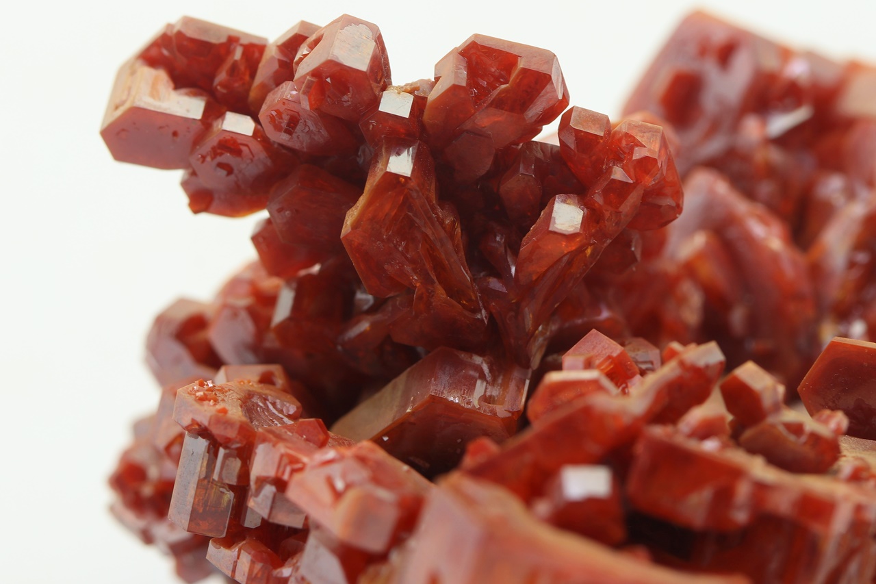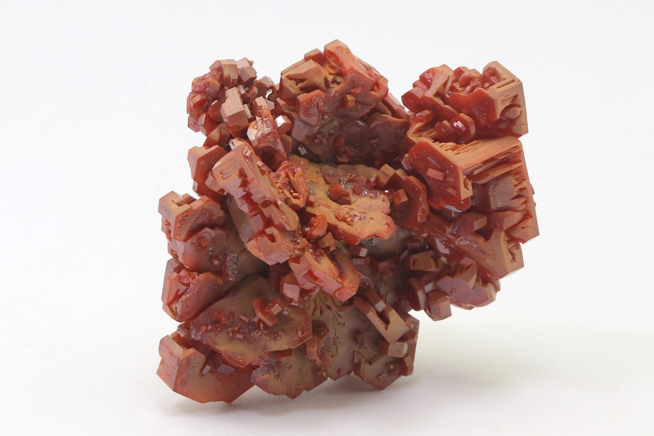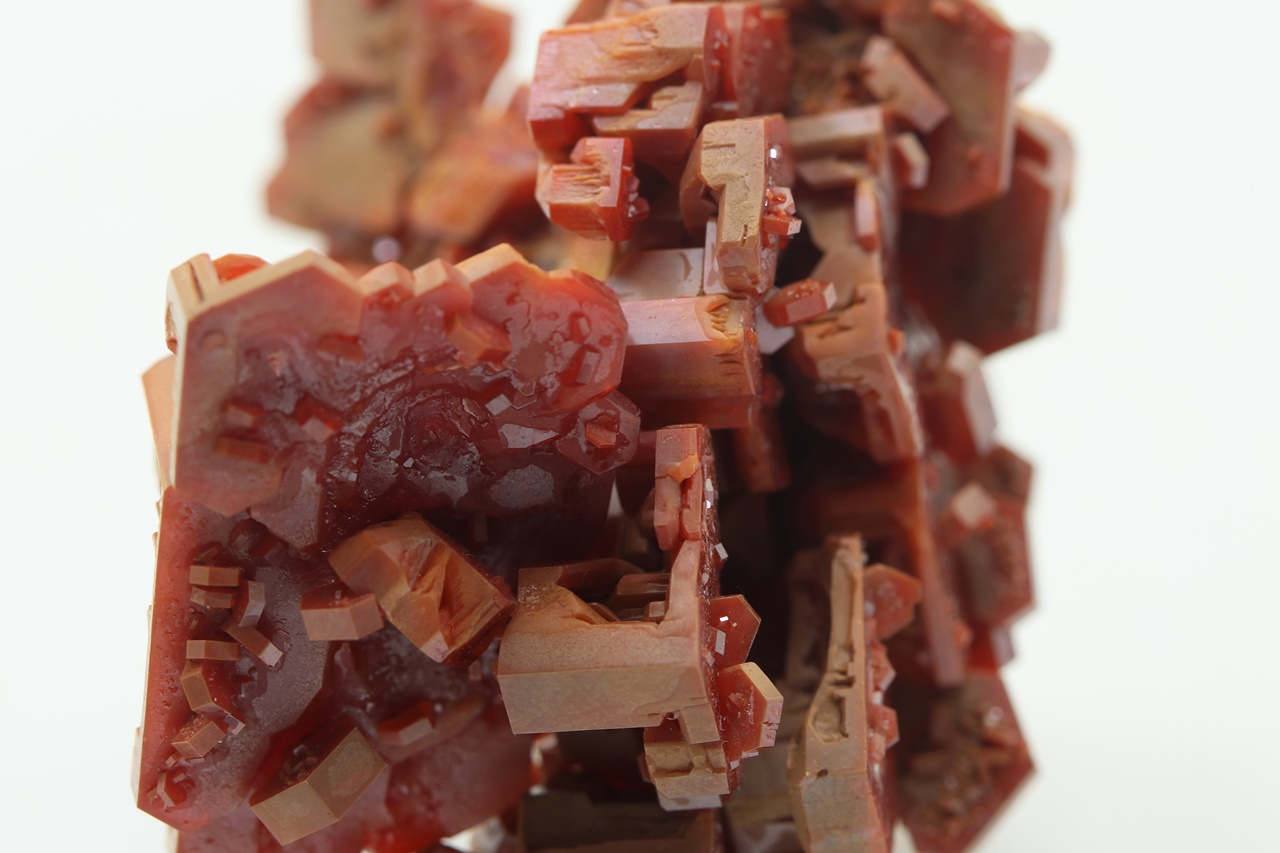 Exceptionally high-quality cluster of several large vanadinite crystals with a pronounced skeletal development.