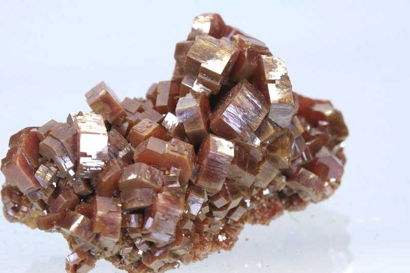 Aesthetic druse up to 12 mm of perfectly bounded crystals of the rare lead vanadinate, vanadinite. High-quality druse of larger bright red shiny vanadinite crystals from Morocco.