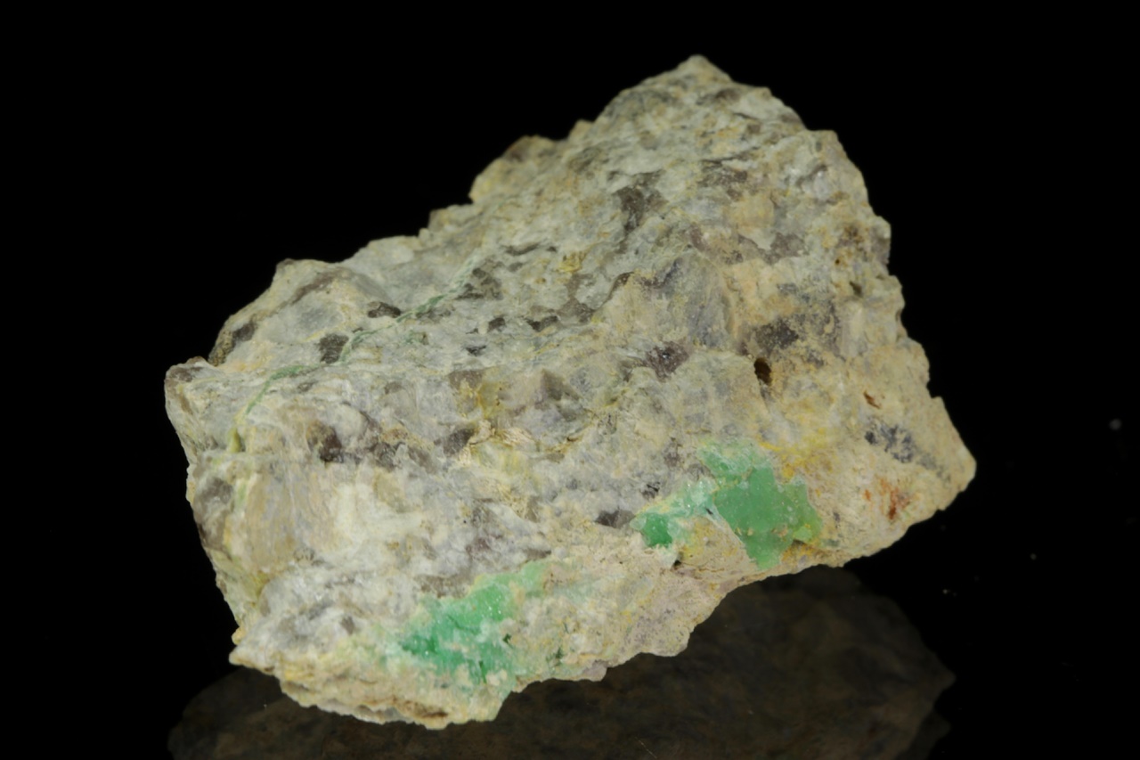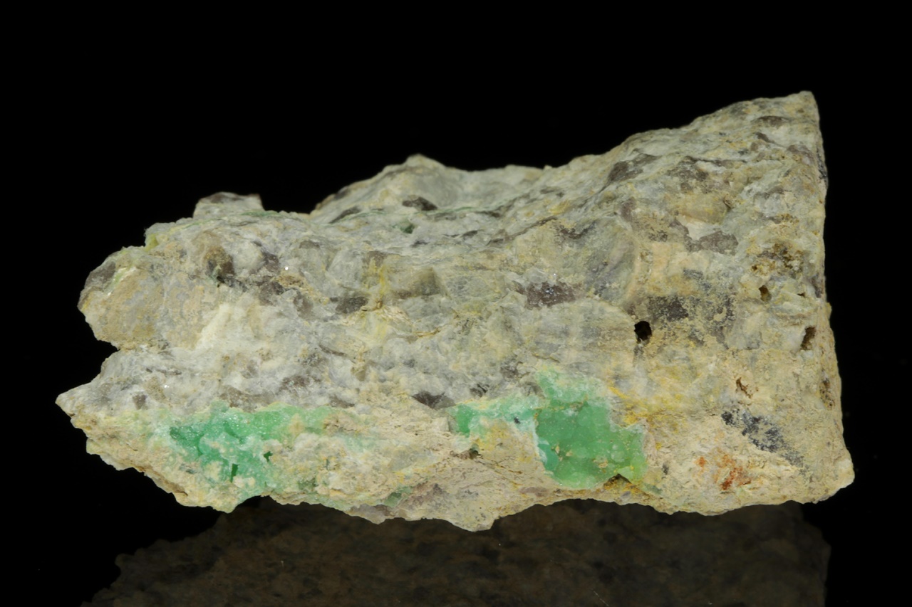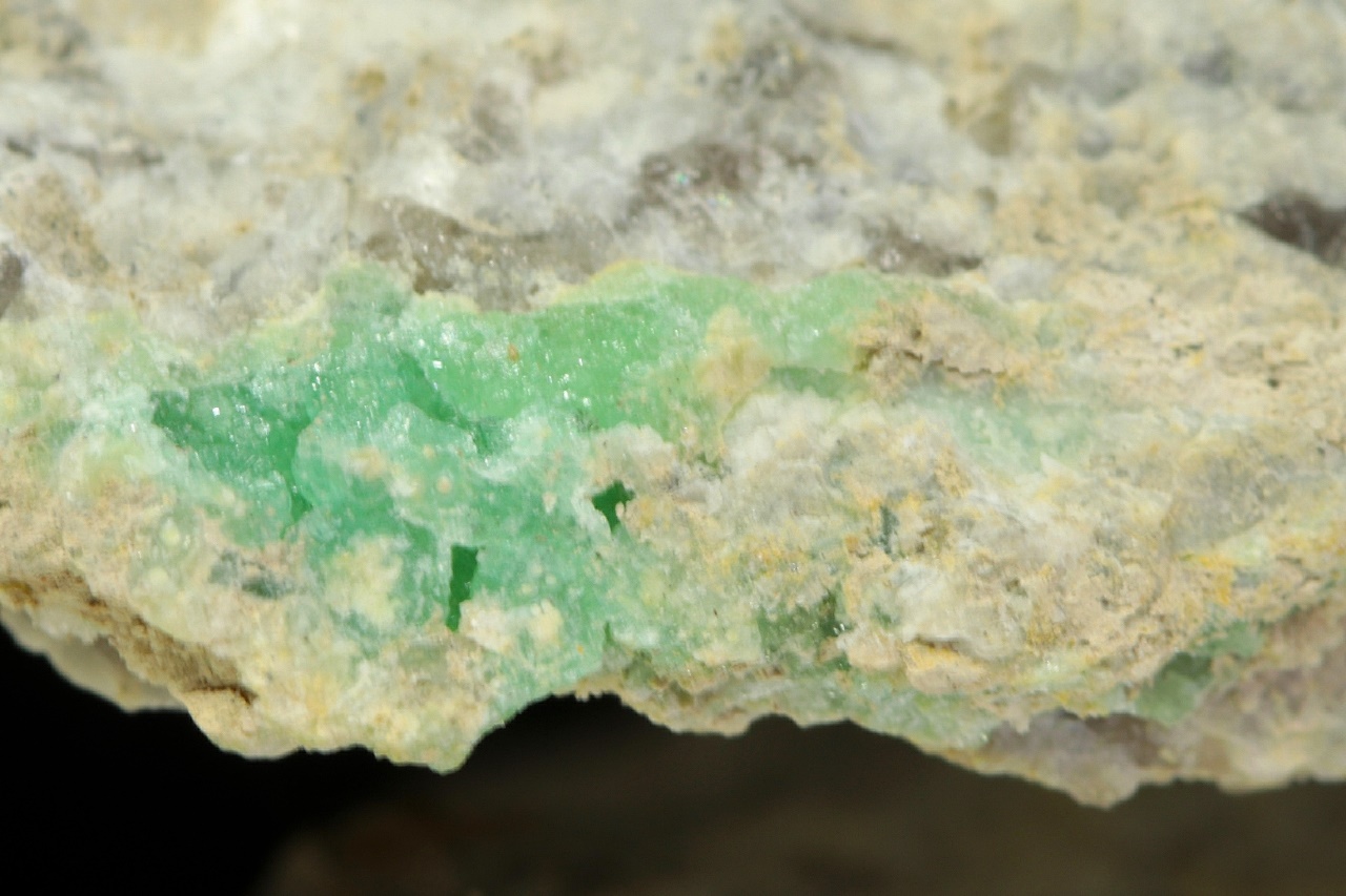 Aggregates of green Variscite grown in cavities. The larger cavity is 7 mm in size.