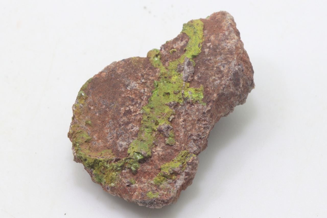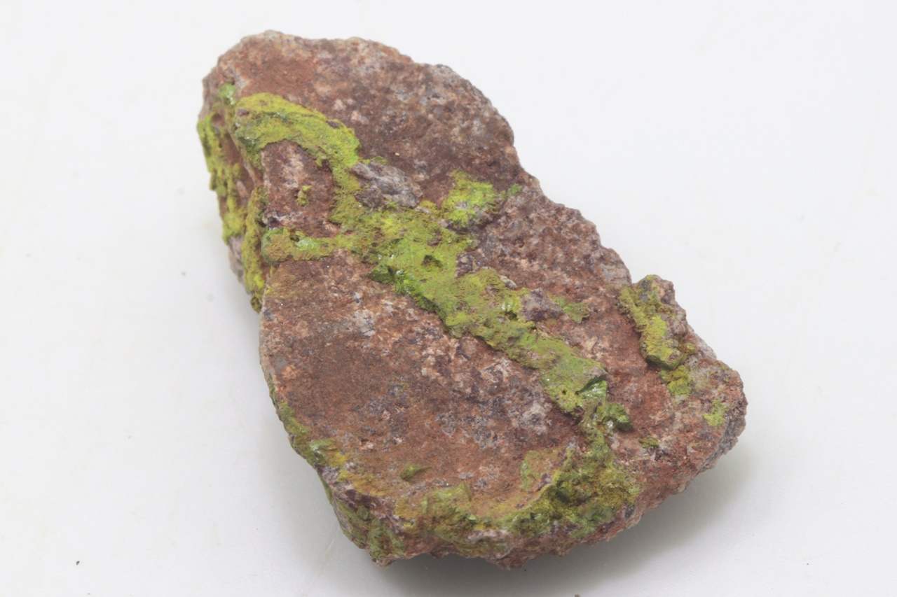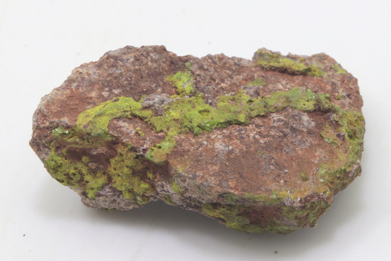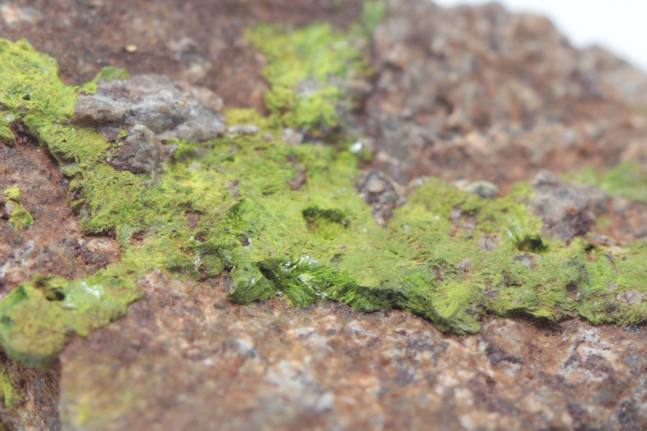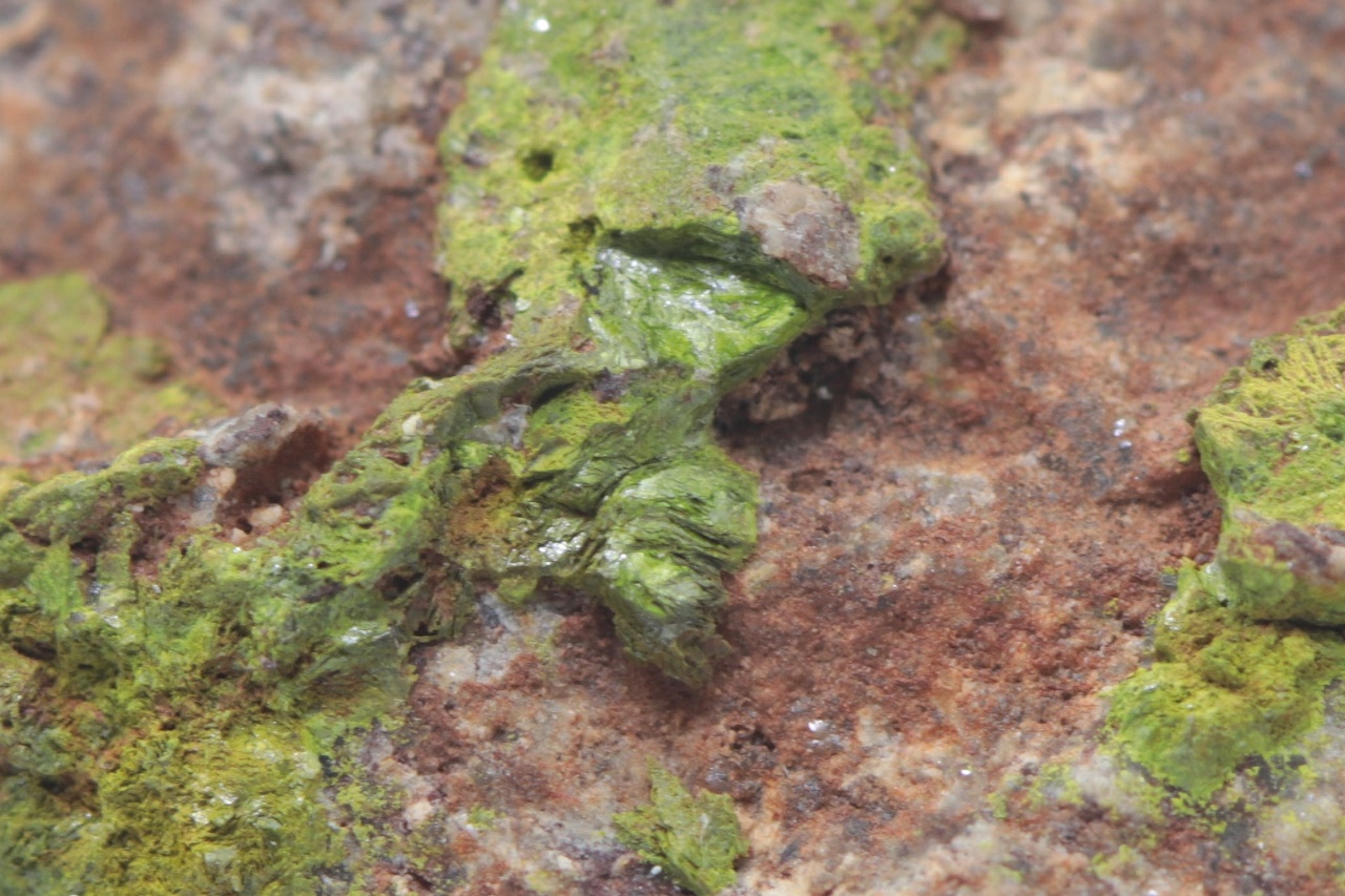 Prostorové agregáty lupenitých krystalů zeleného vanadátu mědi a barya.