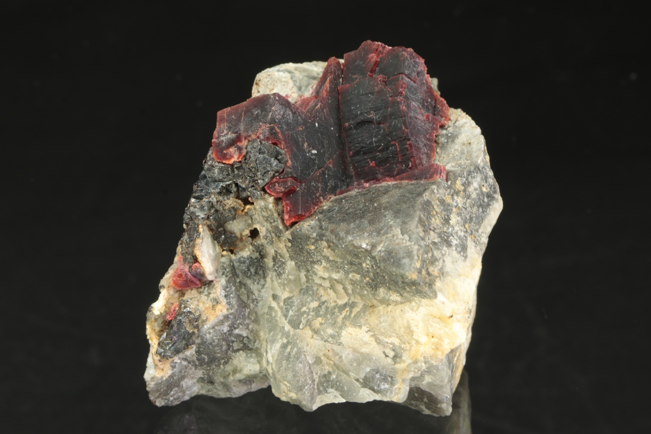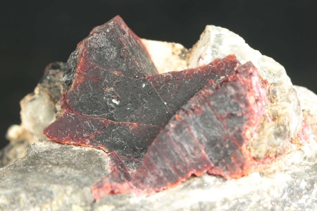Exceptionally large crystals of wine-red villiamite. The size of the crystal aggregate is 2.5 × 2 cm.