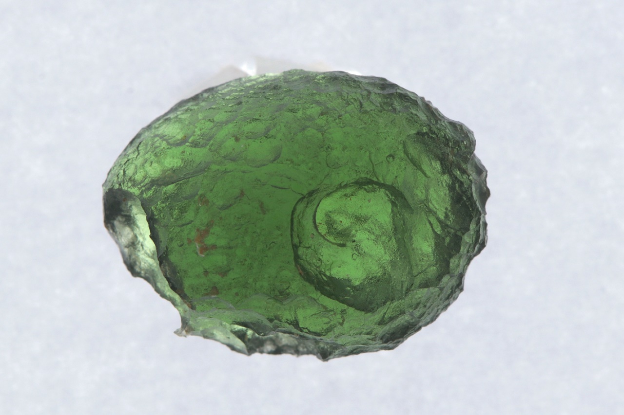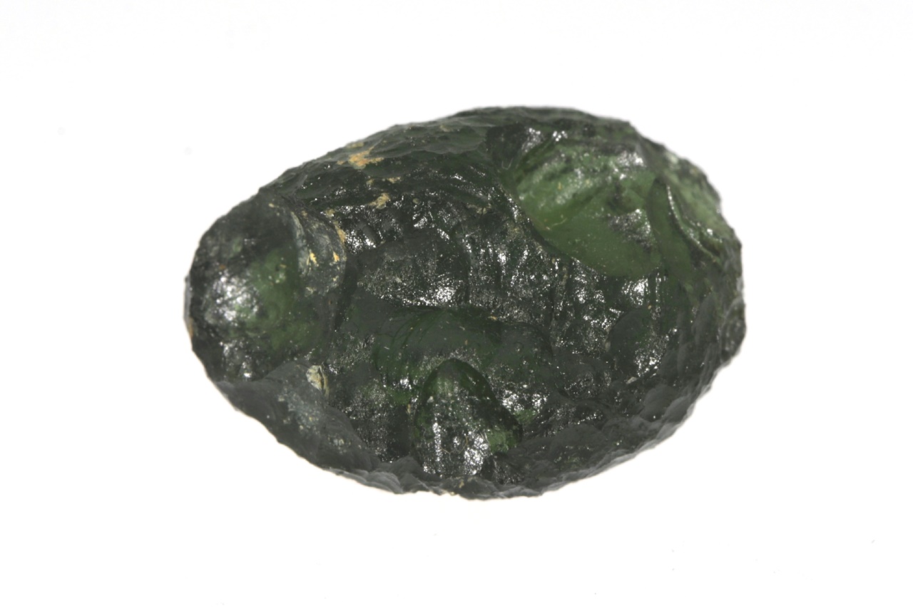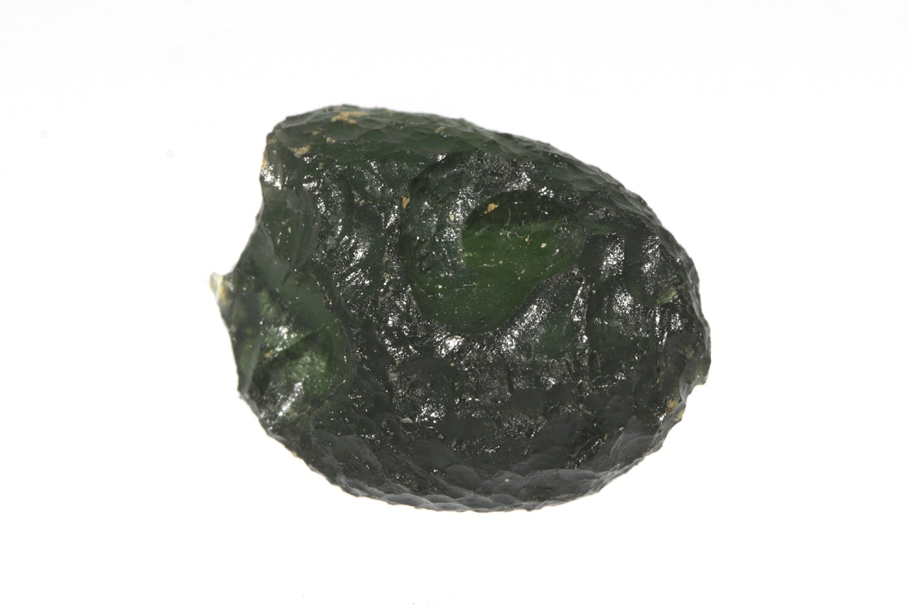 Krásný kulatý celotvar vltavínu s výraznou skulptací. Vlavín je nepoškozený. Hmotnost: 4,19 g.