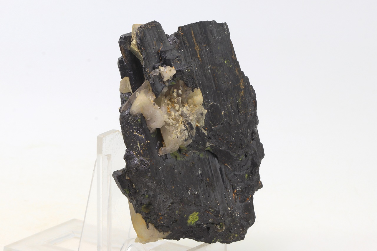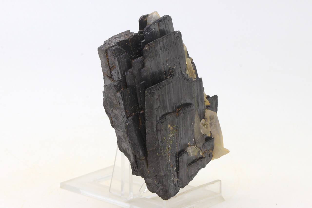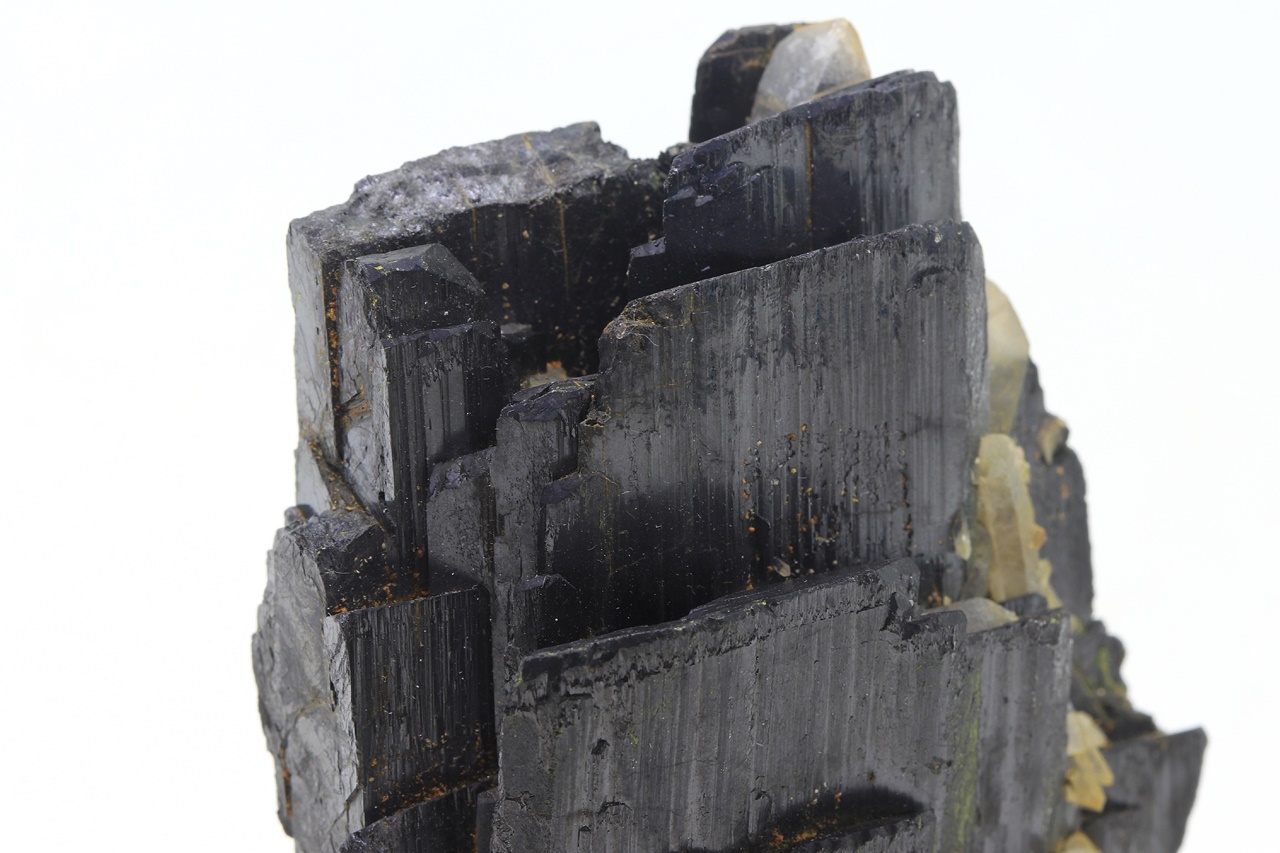 Large, black, striated wolframite crystals hypoparallel intergrown. The largest wolframite crystal is 5.5 cm big.