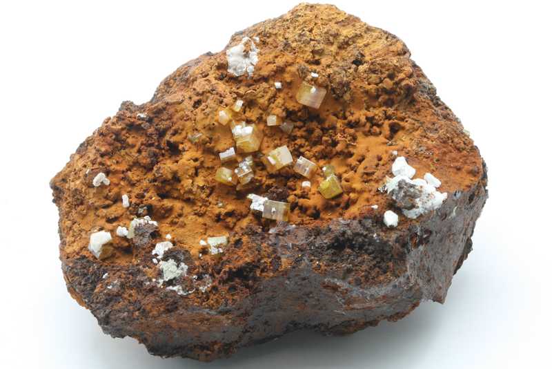 Sample of wulfenite from the Mexican locality Mapimi. Druse of cubic crystals of yellow wulfenites up to 5 mm in size.