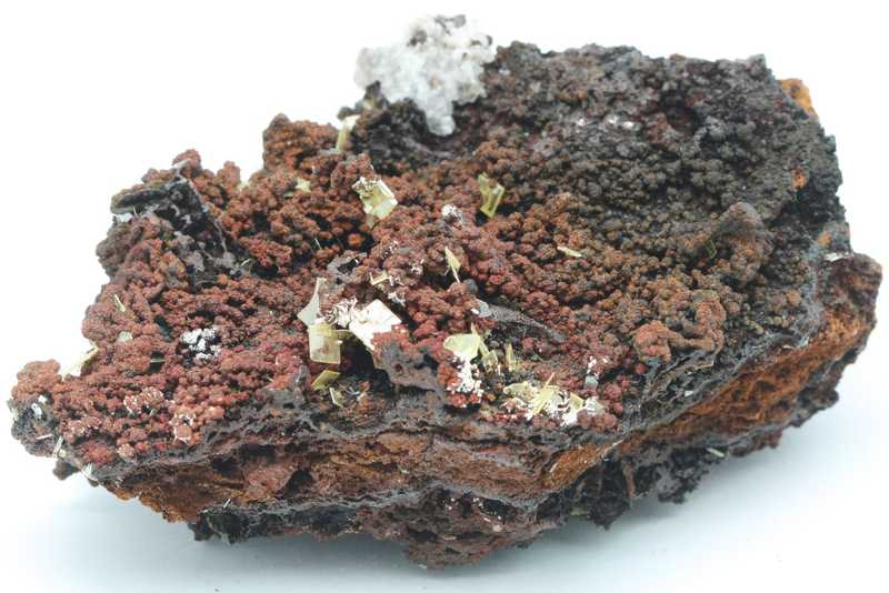 Quality sample of shiny wulfenite crystals up to 6 mm large. A display of shiny yellow wulfenite crystals.