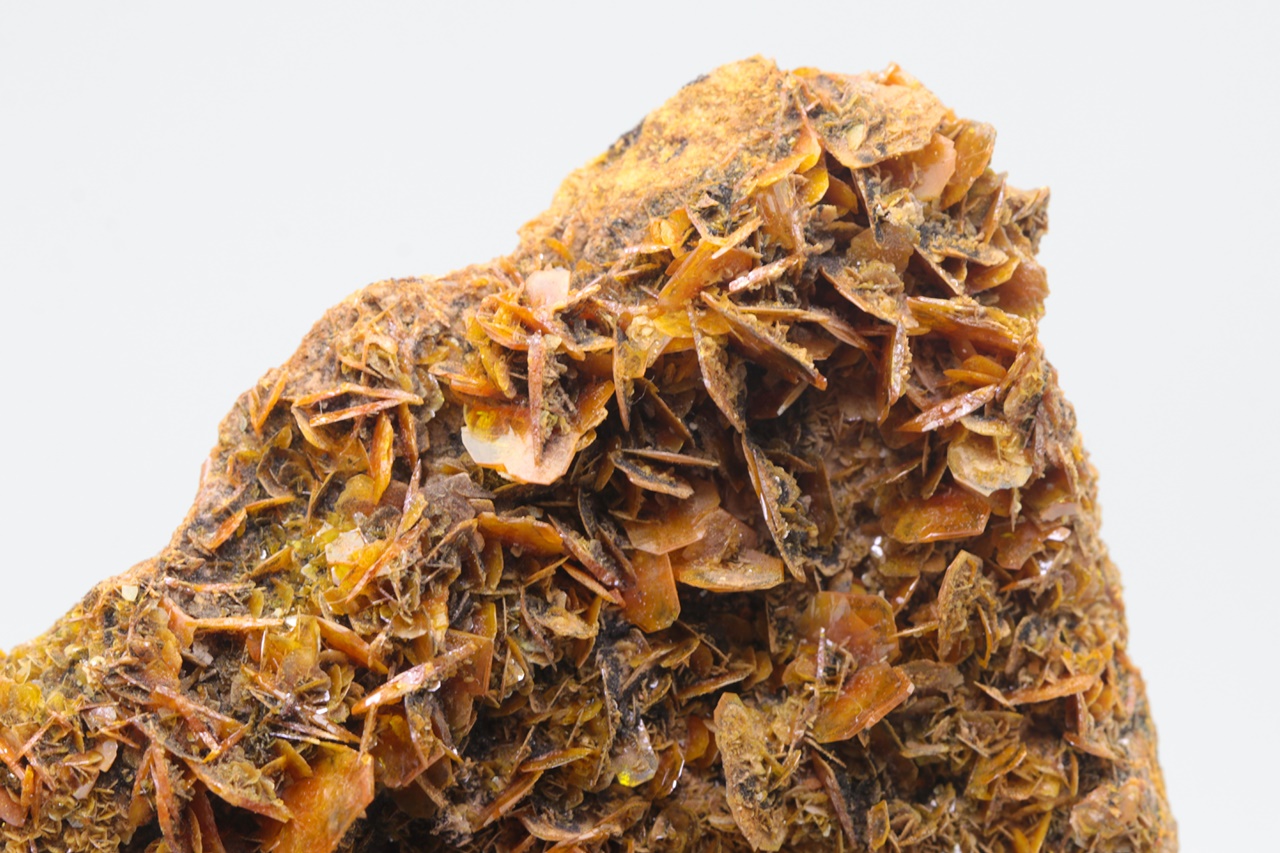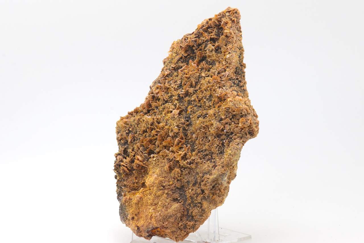Large druse richly overgrown with crystals of beige Wulfenite on which small needles of black Plattnerite grow. The sample must be picked up in store.