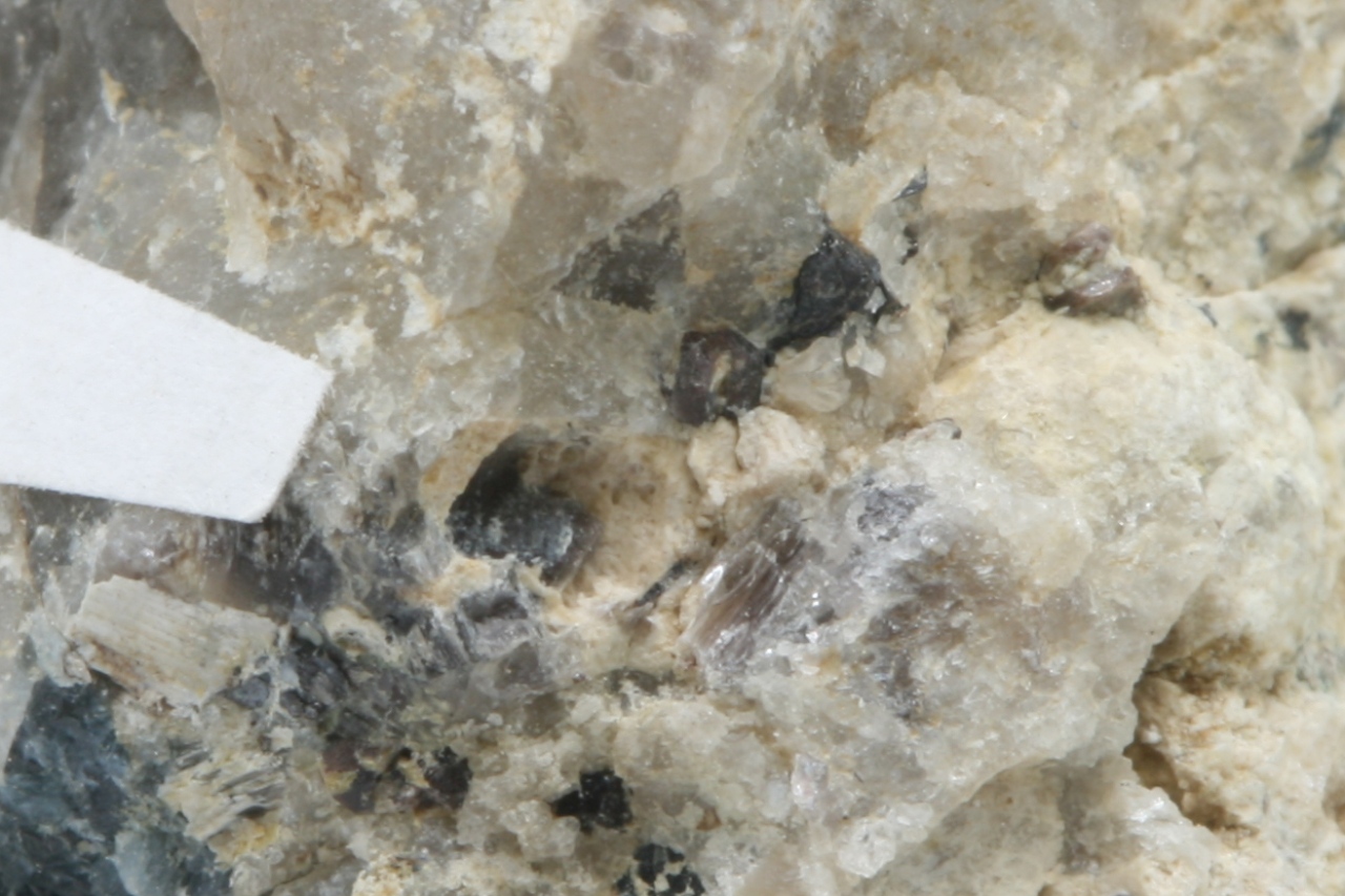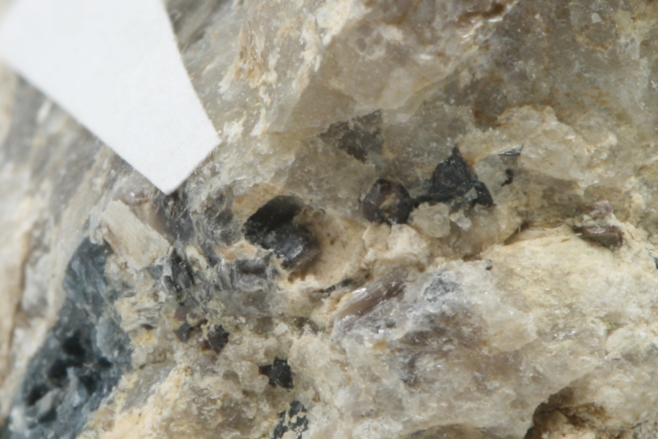 Tiny crystals of brown zircon from the Chvalovice pegmatite. Crystals of zircon 1 mm in size.