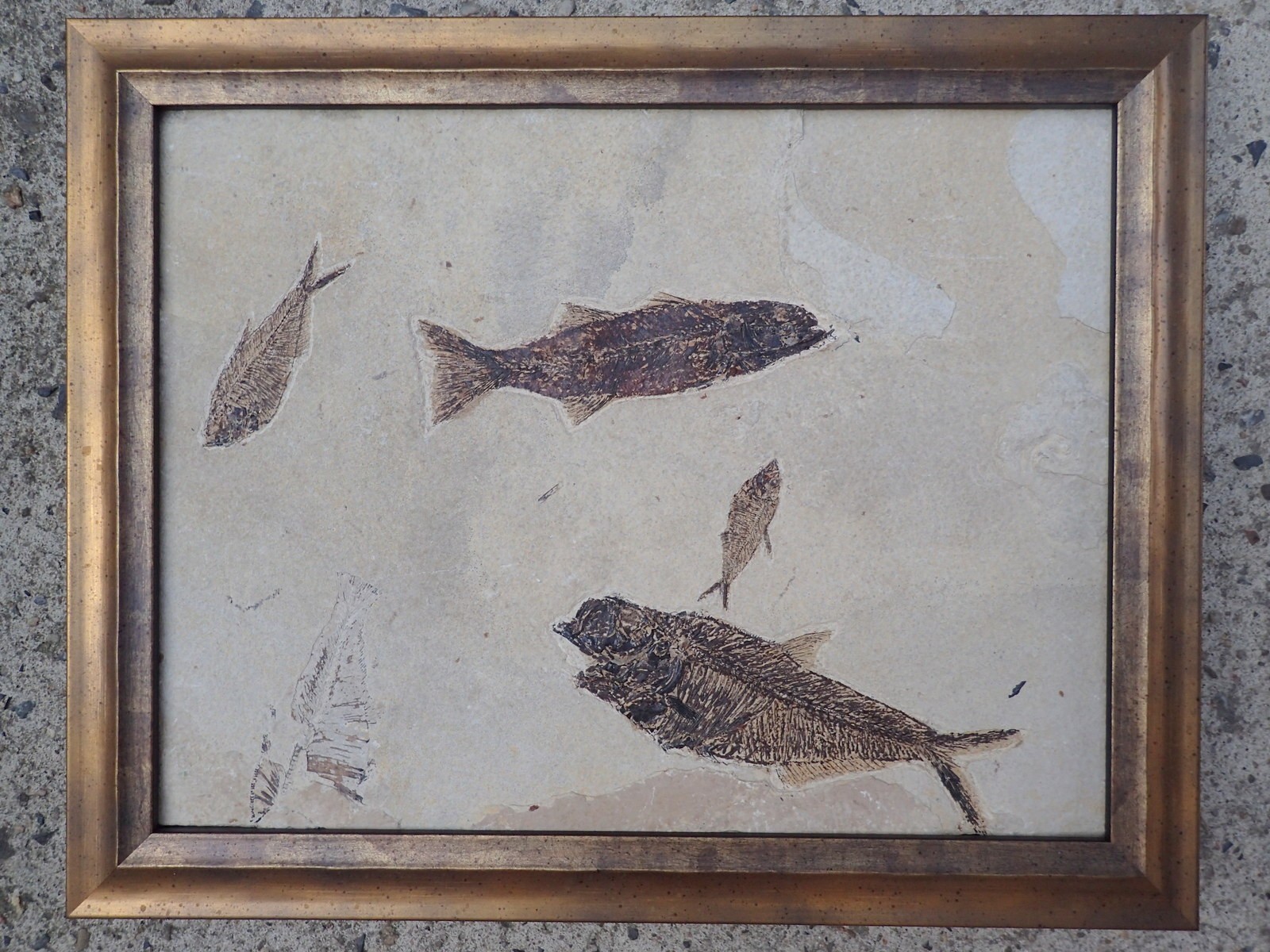 Velká deska se zkamenělinami ryb starých přibližně 50 milionů let.