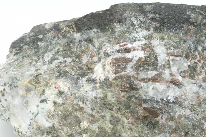 Specimen of thulite from the locality Markovice, Czech Republic. Specimen of pink zoisite crystals, known as thulite.