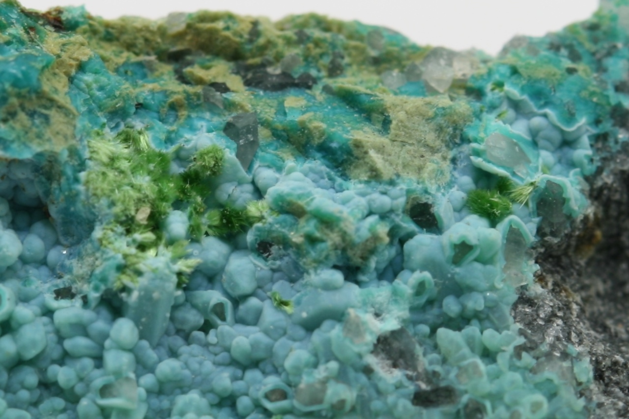 Radial aggregates of green acicular crystals of calciopetersite – a rare phosphate from the type locality.