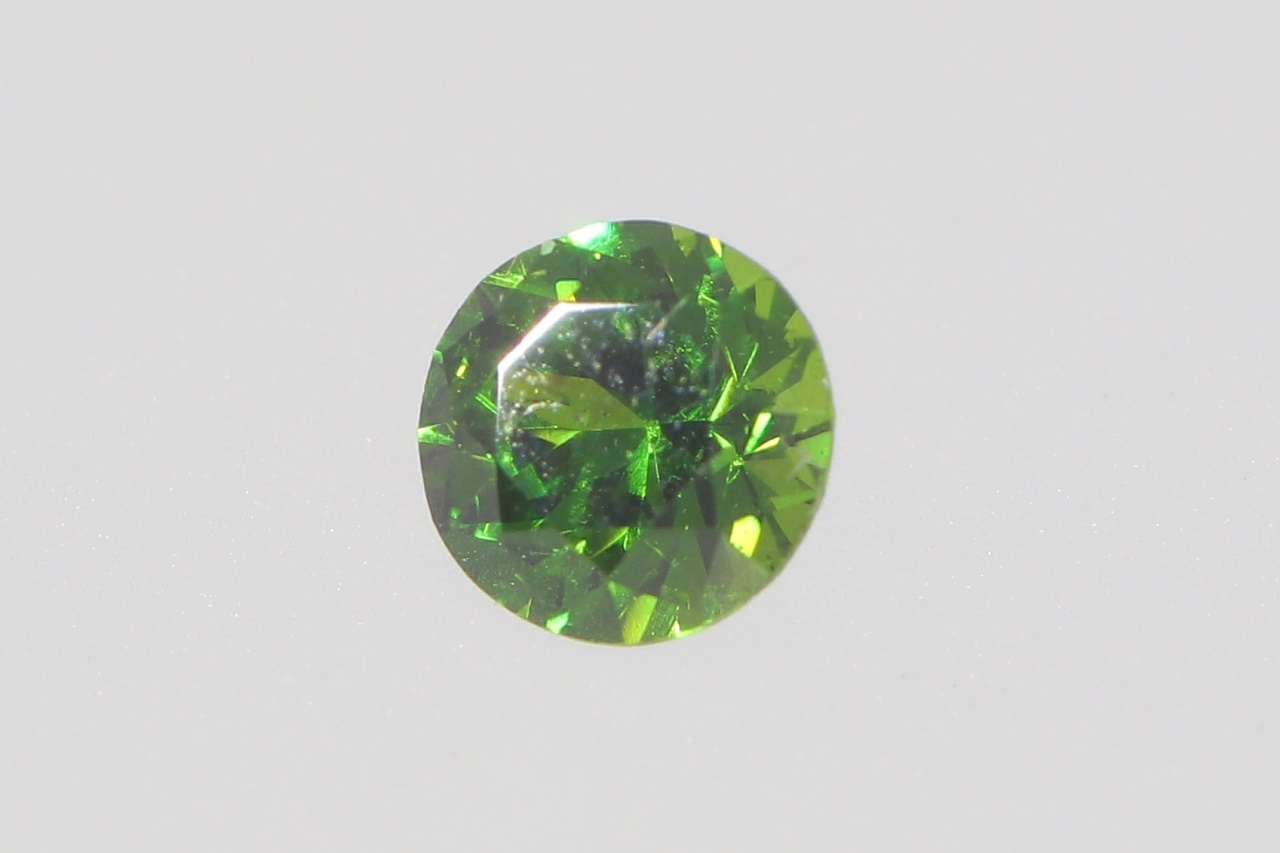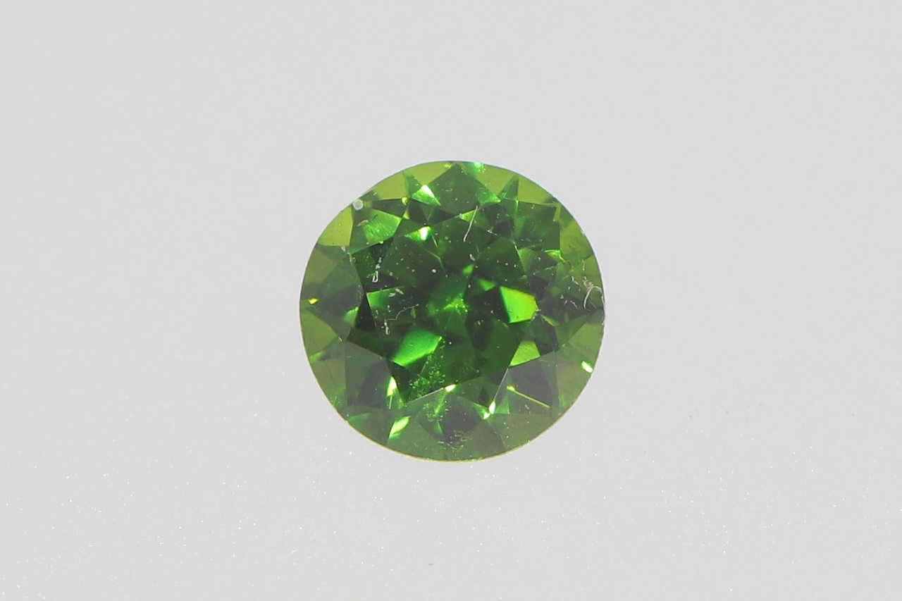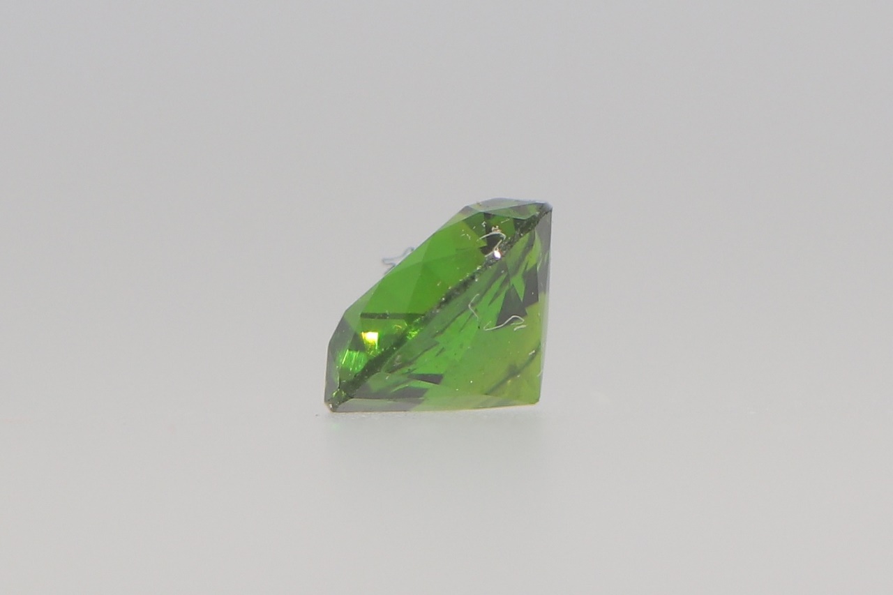 Intensely green garnet cut into a diamond shape weighing 0.3 carats.