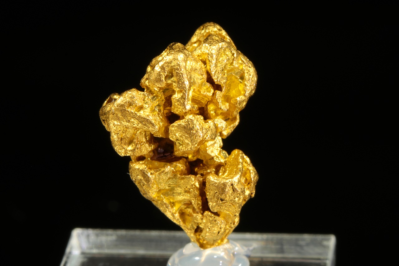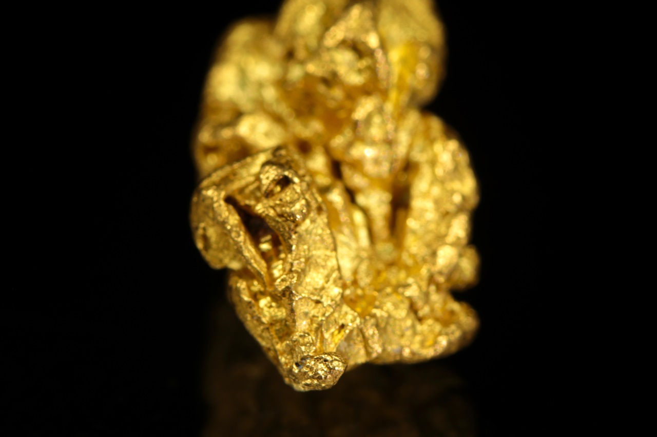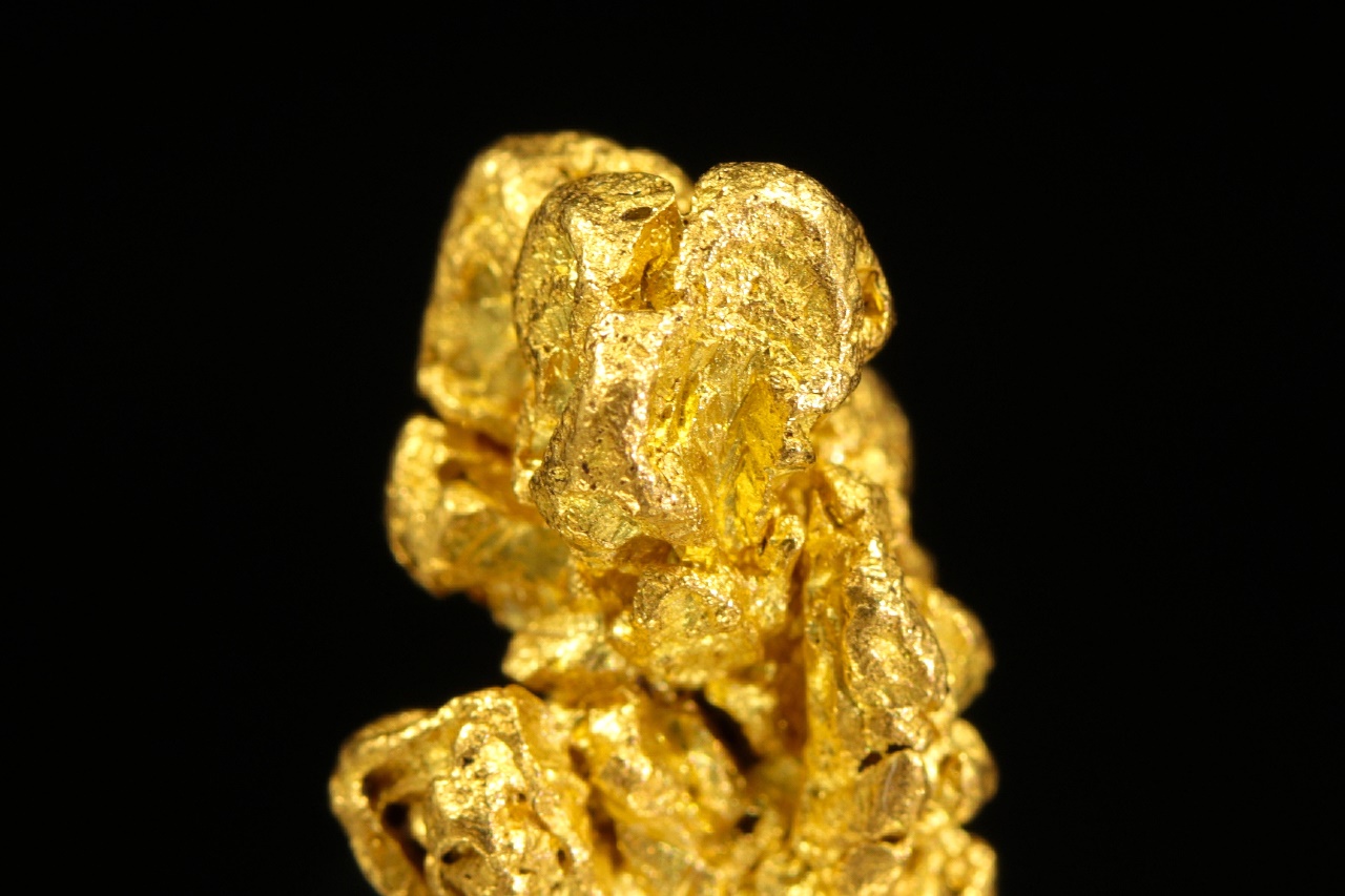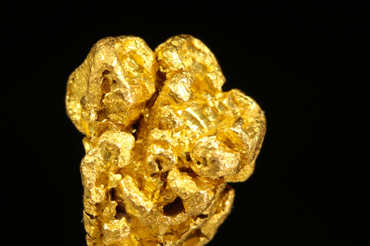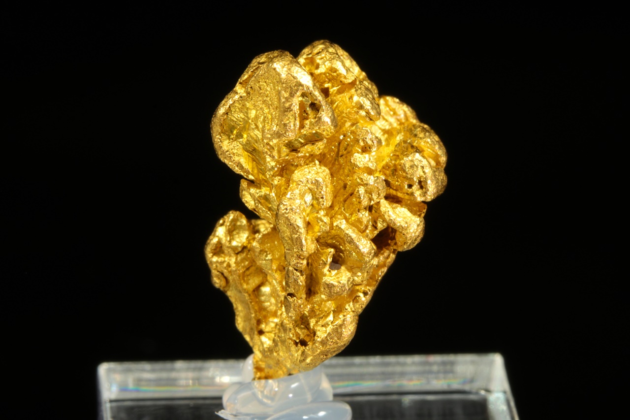 Beautiful specimen of pure gold with a structured surface formed by skeletal crystallization.