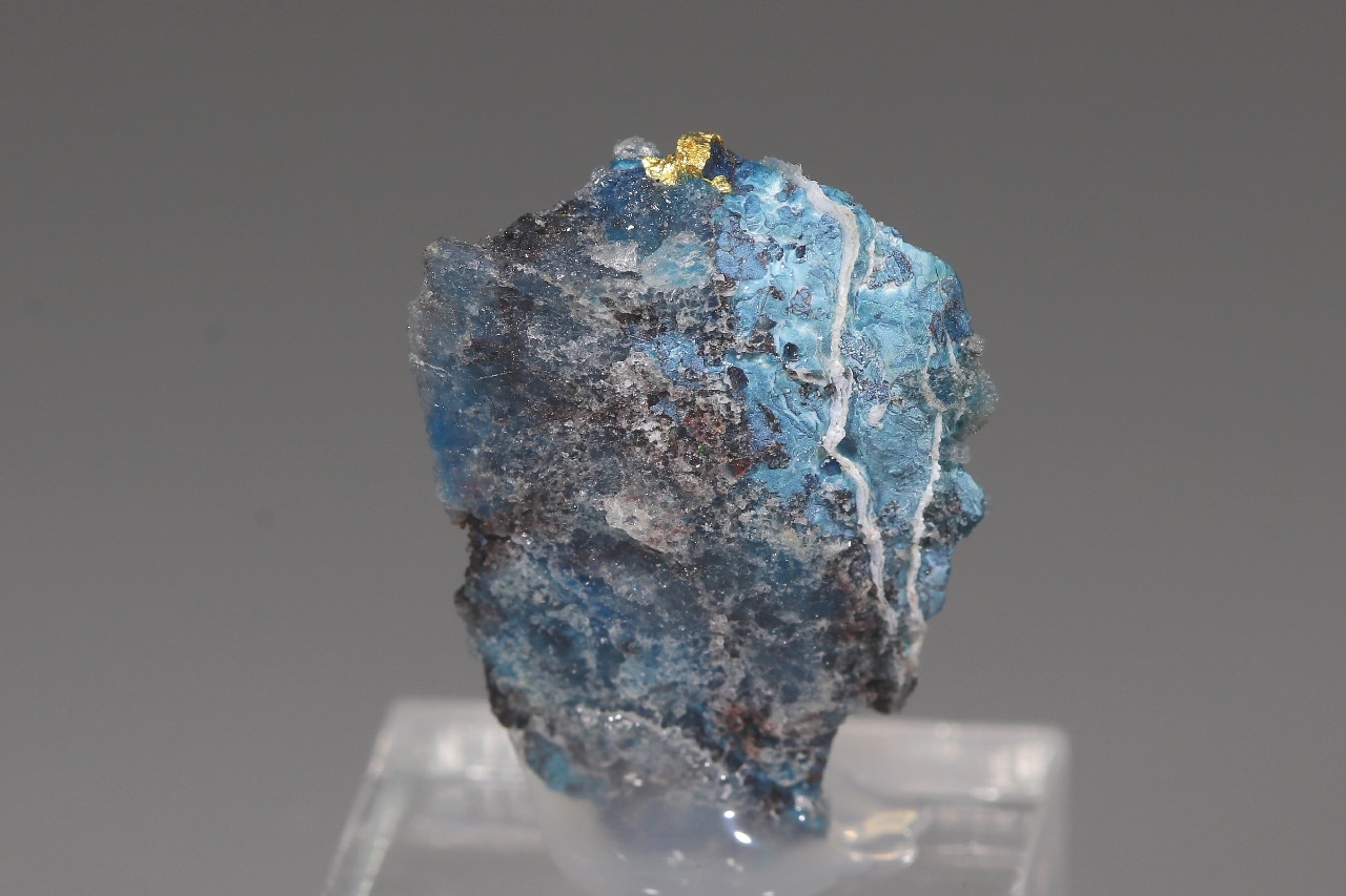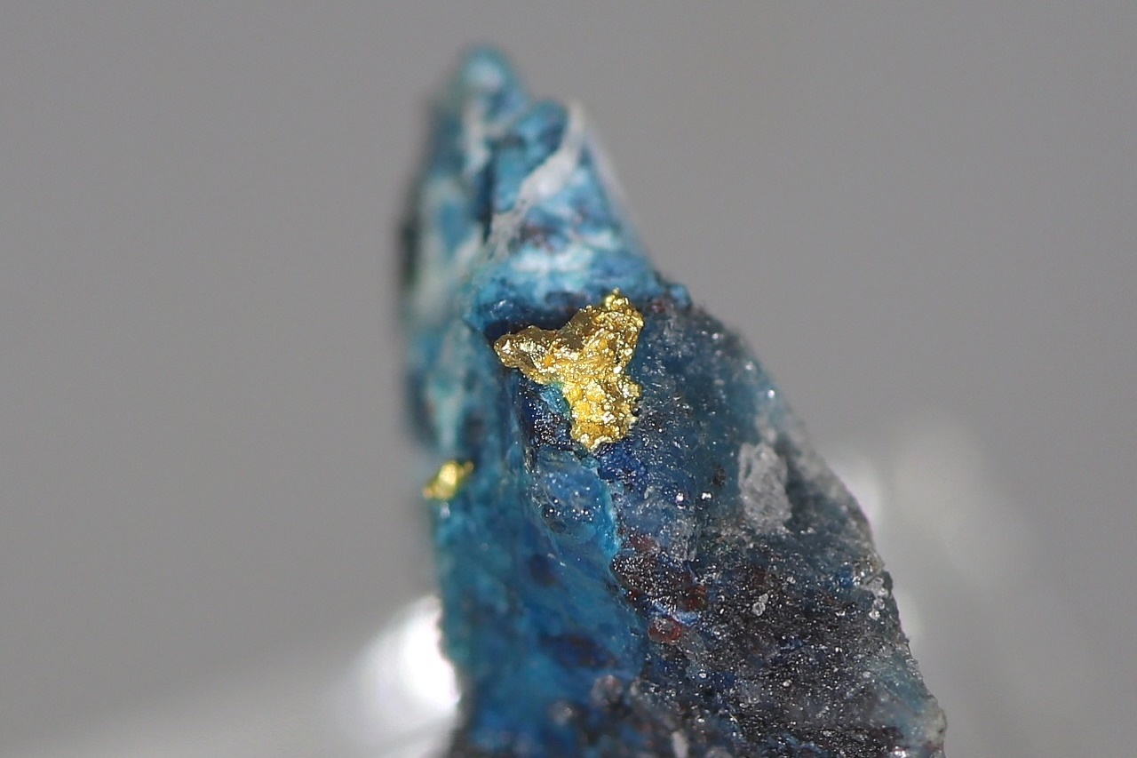 An aggregate of native gold, 2 mm in size, grown in blue Shattuckite .