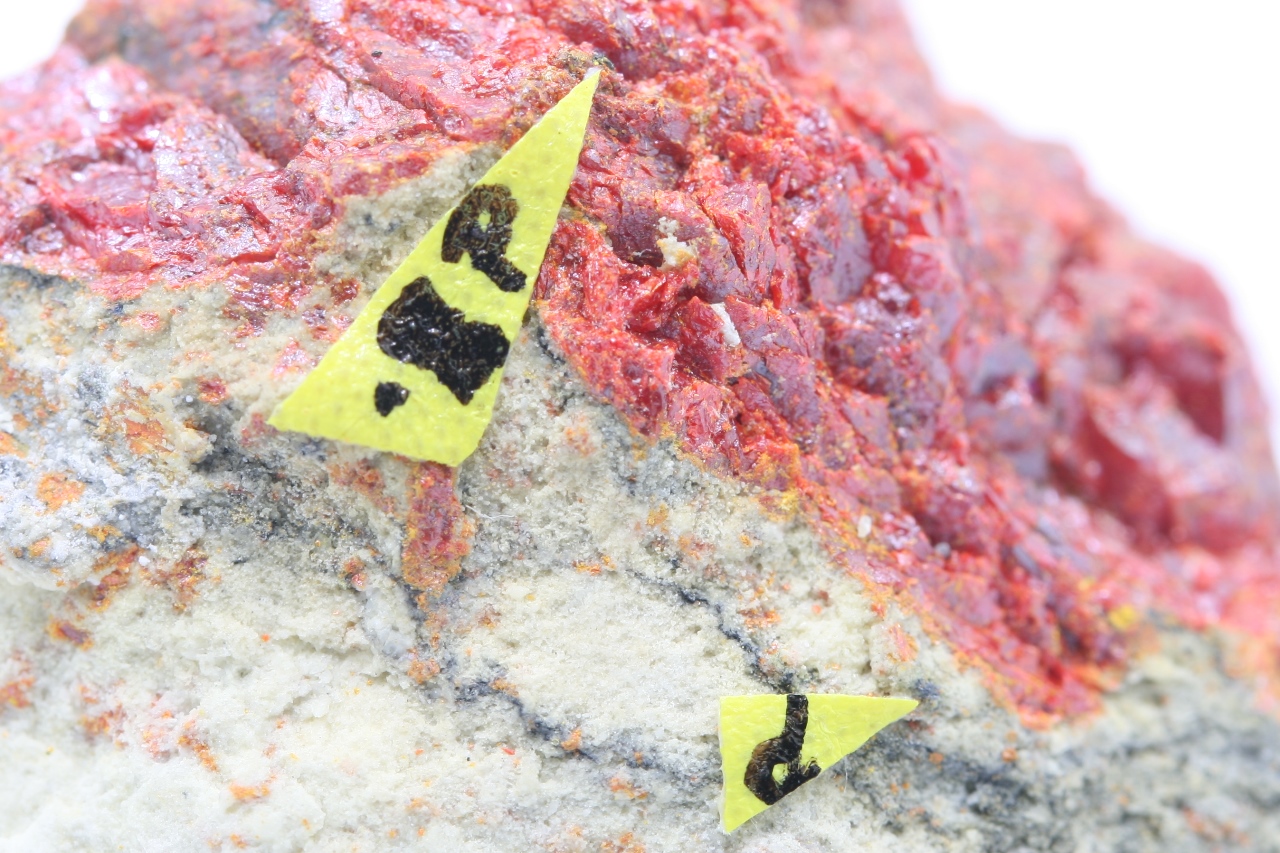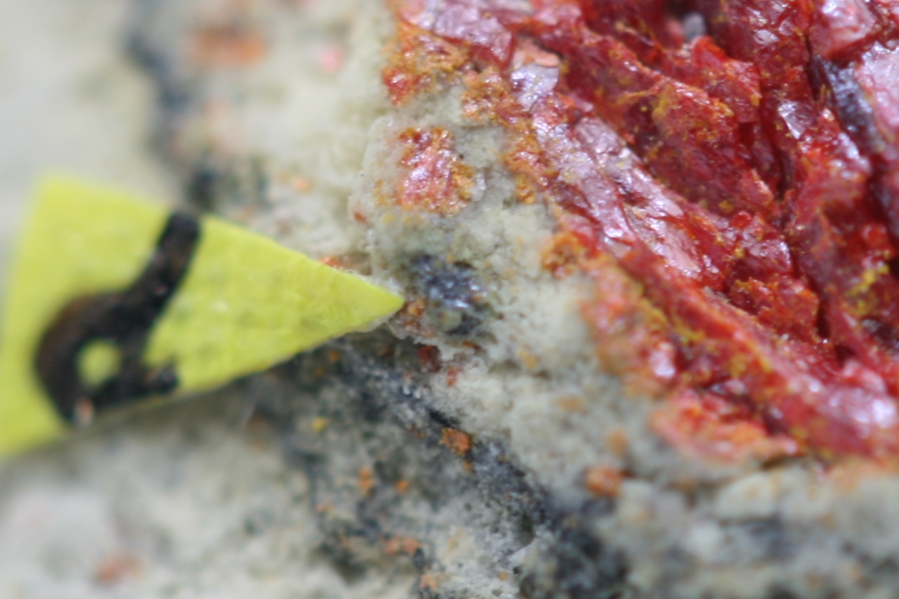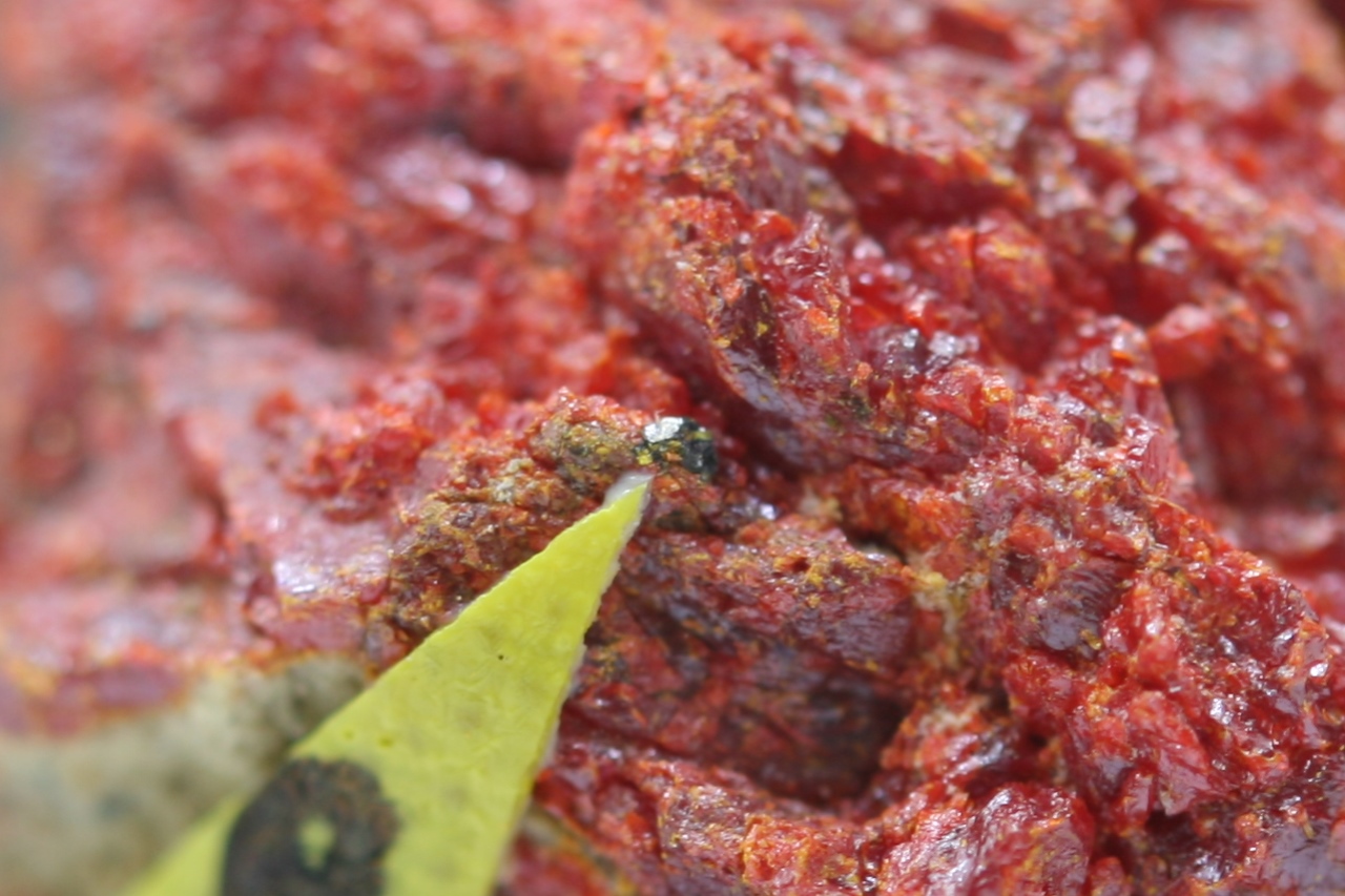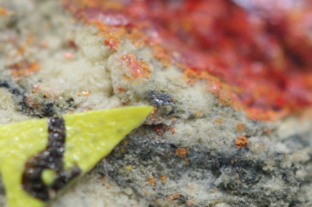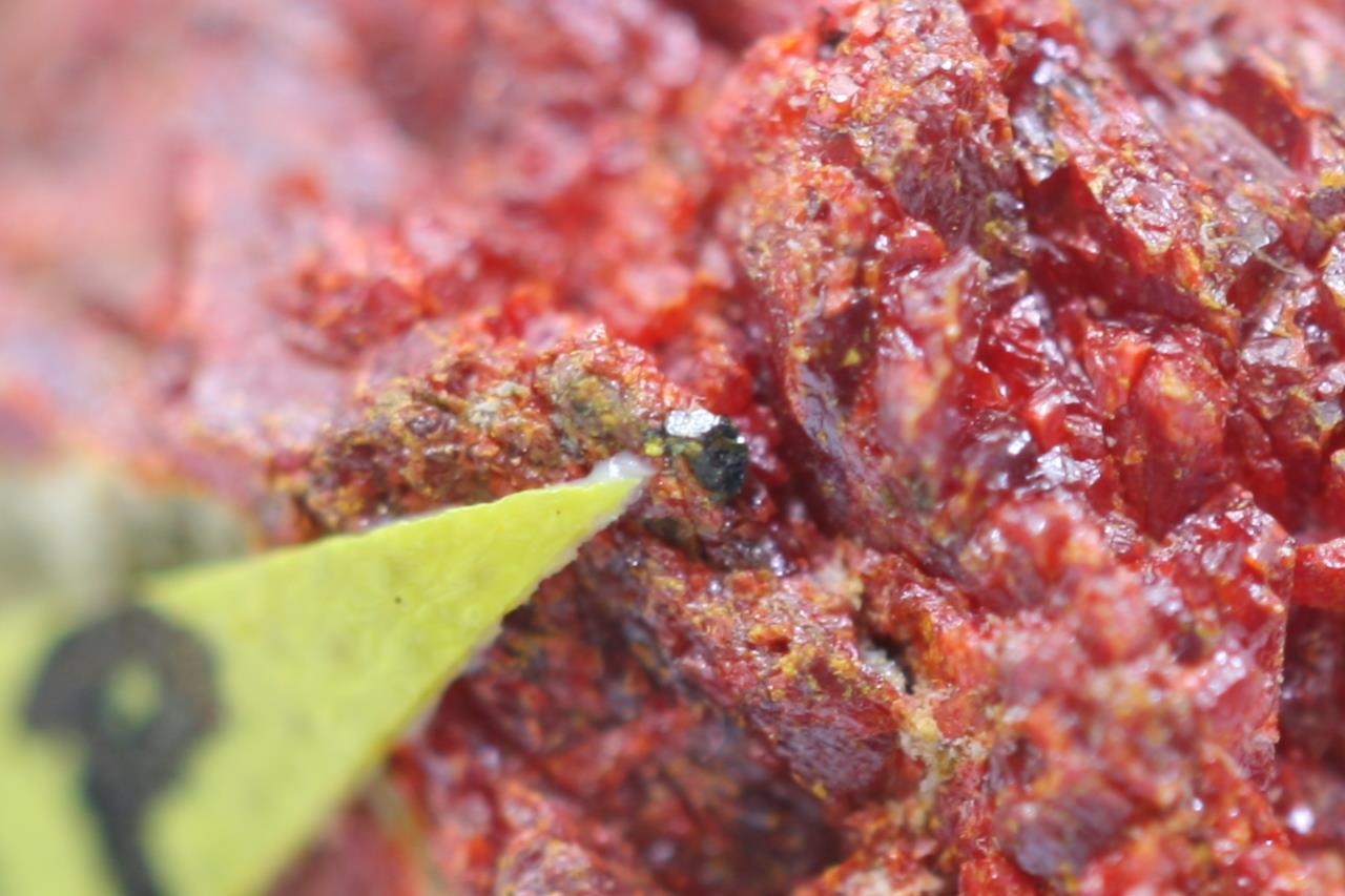 Black crystal (approx. 0.5 mm) and a grain of rare thallium and antimony sulfide from the type locality.【4:4†cz_to_en.json】