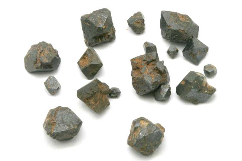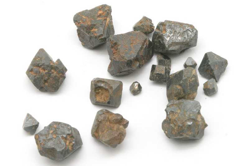 Several crystals of brown perovskite. Sample of brown loose perovskite crystals, the largest of which is 10 mm.