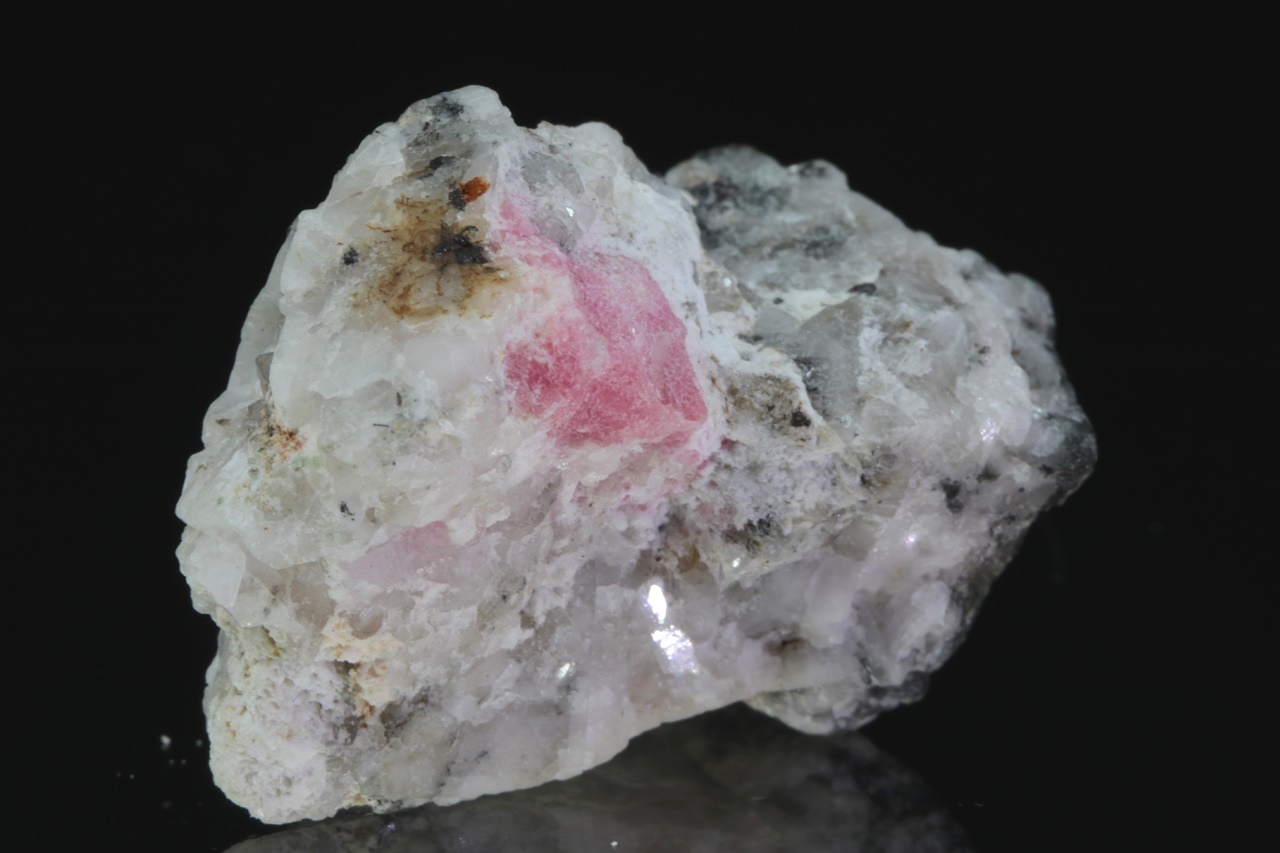 Pink grain of the rare silicate beryllium – tugtupite with the ability of so-called tenebrescence (changes color after exposure to UV radiation). The grain size is 9 mm.