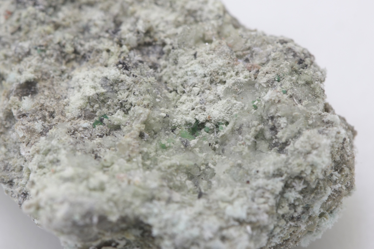 Vajdakite on the specimen forms tiny, tabular and needle-like crystals of light to grass green color, reaching a maximum size of 1 mm. Vajdakite is one of the rarest minerals from Jáchymov. The specimen comes from the Svornost mine in Jáchymov. Jáchymov is the type locality for this mineral.