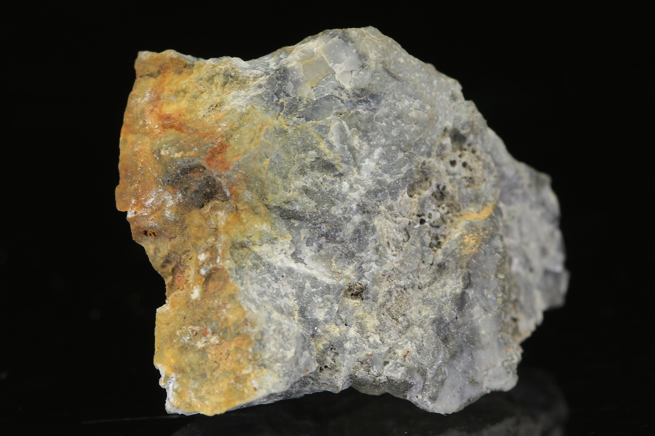 Growth of a yellow-orange, very rare arsenic and antimony sulfide from a difficult-to-access French locality.