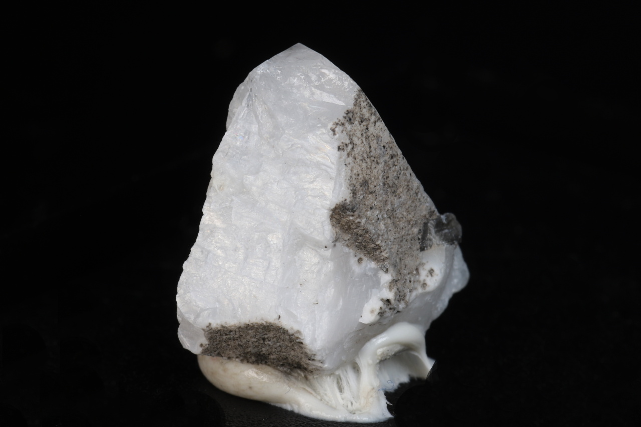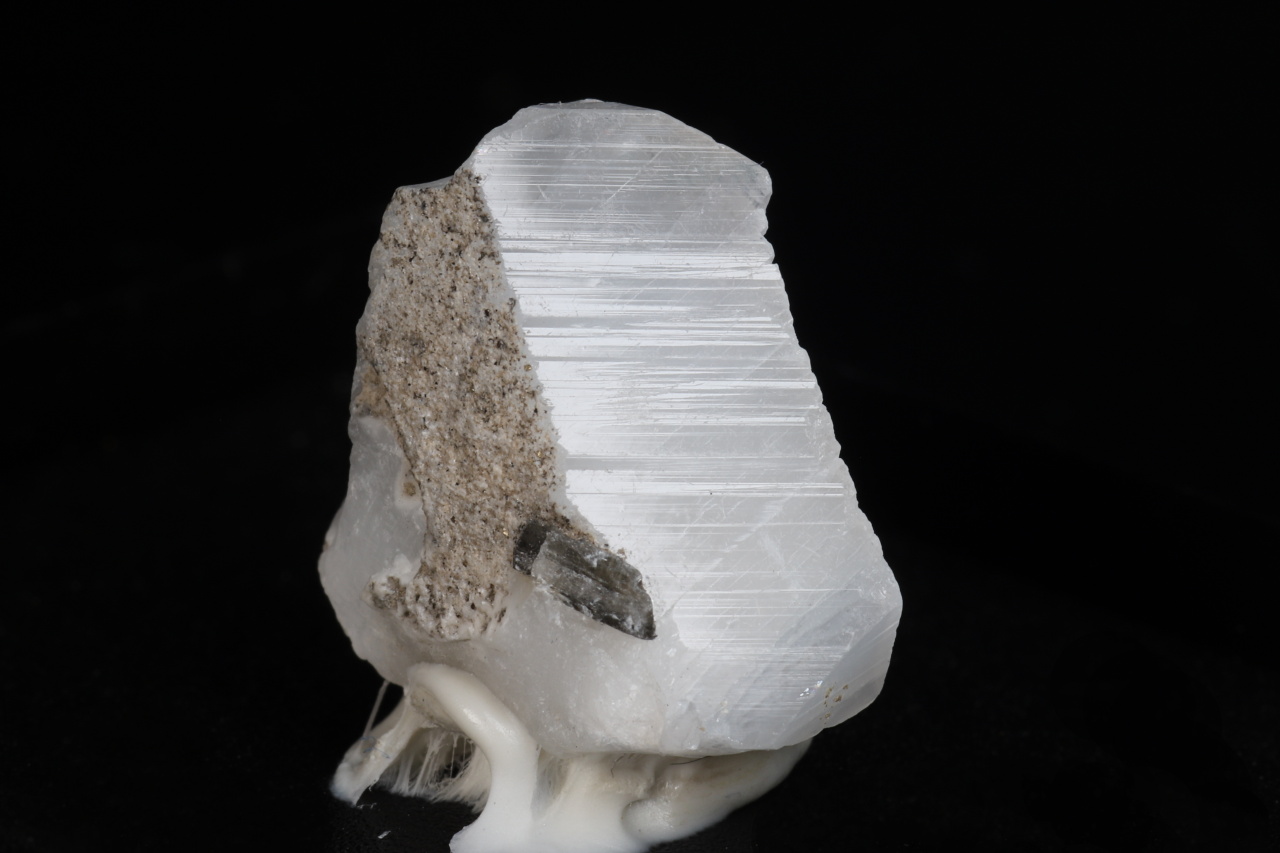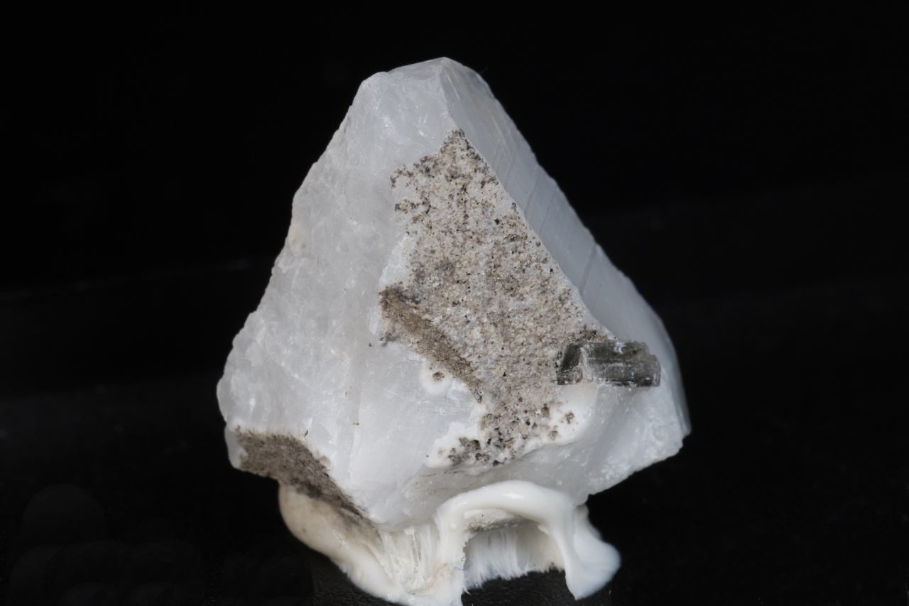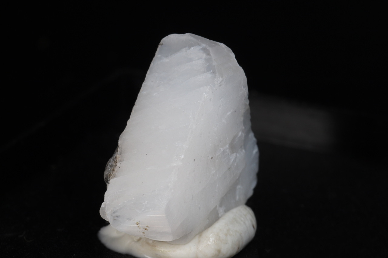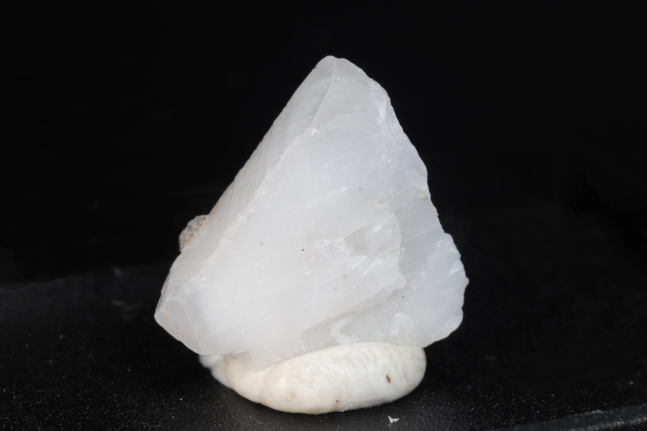 Free snow-white 17 mm crystal partly perfectly bounded by striated crystal surfaces. This rare organic mineral comes from uranium mine No. 19 in Příbram.